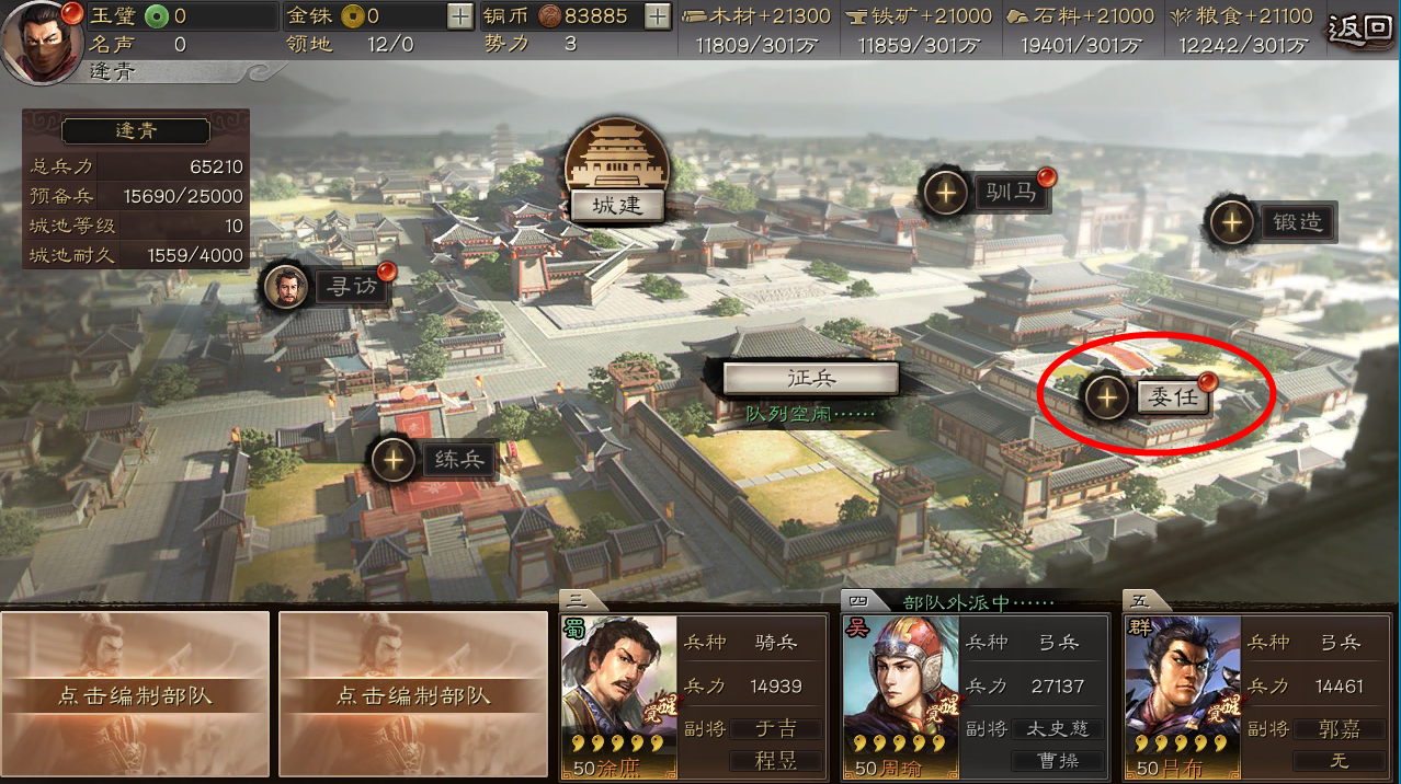 ↓↓↓城池等级达到3级后,主公可以解锁委任功能。