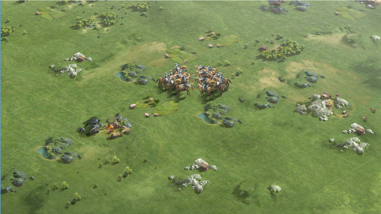部队可以通过“行军”指令在地图上进行移动,行军不受连地限制,并且可以连续进行行军,行军指令下达后部队便会选择路径行军至目标点。在行军过程中可以通过“中止”命令,中止部队的行军过程,行军中止后,部队会停留于原地,需要重新选择部队进行的指令。通过行军、中止等指令的结合,便能够灵活操控部队。