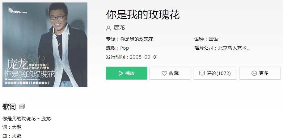 这首歌是由庞龙演唱的《你是我的玫瑰花》