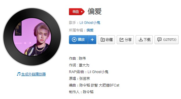 这首歌是由Lil Ghost小鬼演唱的《偏爱》