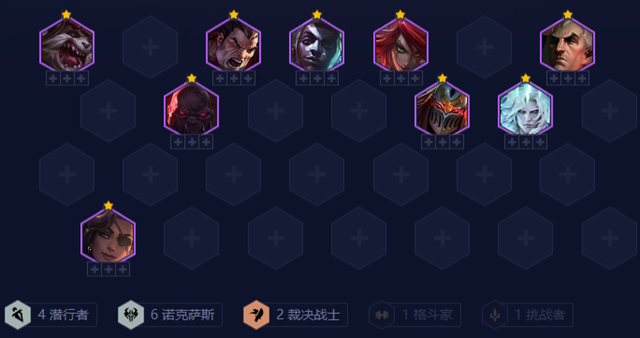 羁绊:4潜行者,6诺克萨斯,2裁决战士